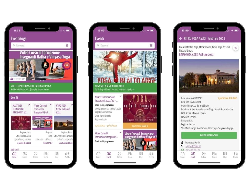 - visibilità immediata nella Nuova APP Eventi Yoga