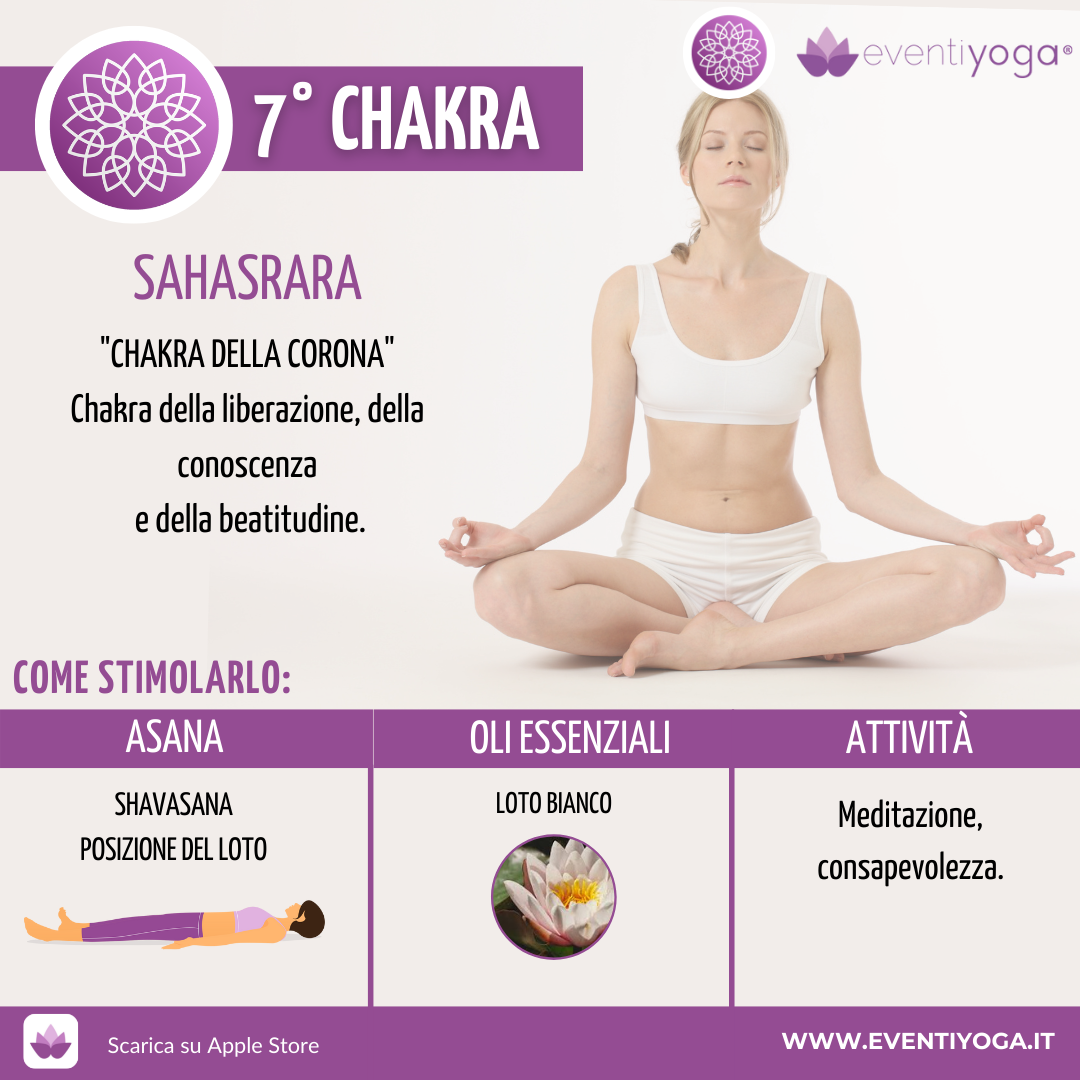 Il settimo chakra è Sahasrara, situato alla sommità della testa. Il suo colore è il viola ed esprime un senso di spiritualità. Quando quest’area è in equilibrio, ci sentiamo più connessi con la nostra essenza divina e possiamo raggiungere il massimo potenziale.