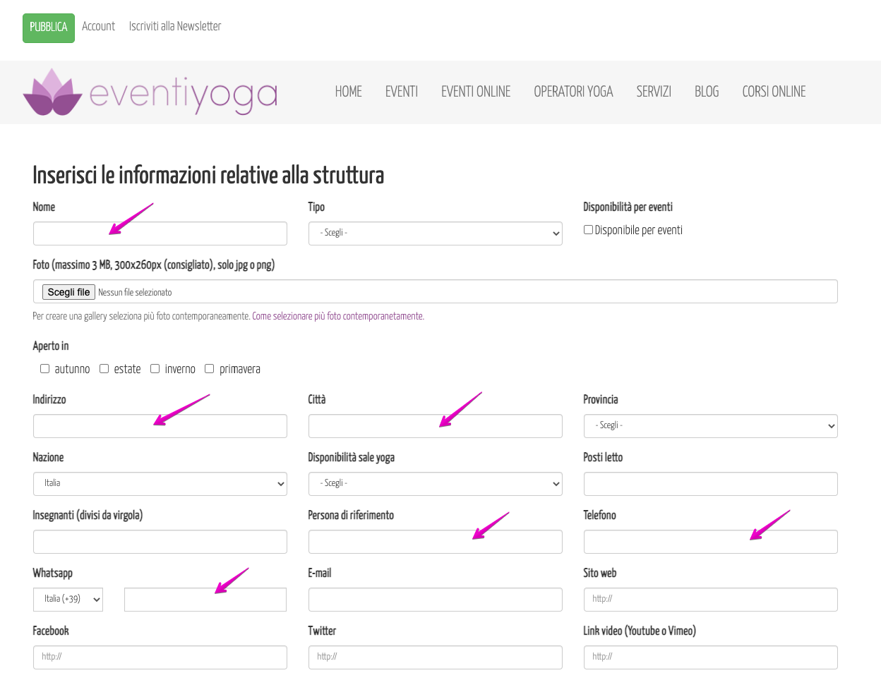 Vuoi registrare una struttura yoga su EventiYoga? Ecco una guida per spiegarti passo dopo passo come inserire sul nostro sito tutte le informazioni utili per promuovere strutture che ospitano eventi di yoga. Sei pronto? Iniziamo!