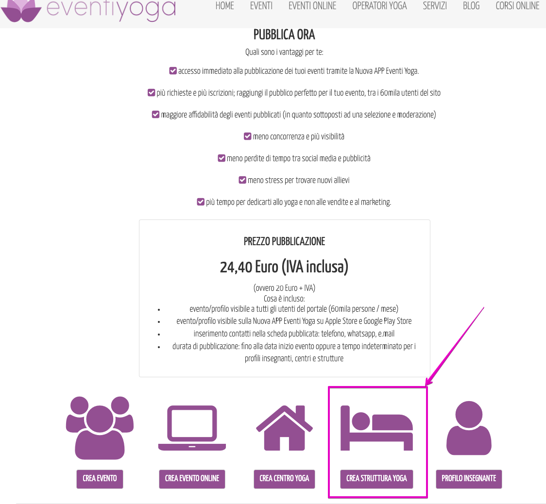 STEP 2 BIS: clicca sull’icona “Crea Struttura Yoga”