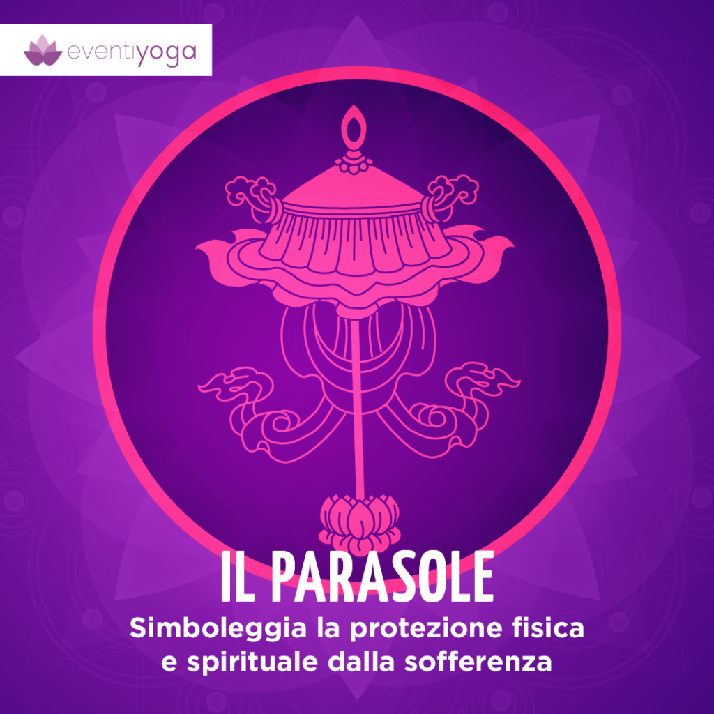 Questo oggetto che protegge da sole e pioggia simboleggia la protezione fisica e spirituale dalla sofferenza. Usato nel passato da famiglie adinerate per proteggersi dal sole, rappresenta anche la gioia che deriva dal fresco della sua ombra. Un altro significato può essere la rappresentazione dell’importanza del supporto spirituale nella vita quotidiana per proteggersi dal negativo.