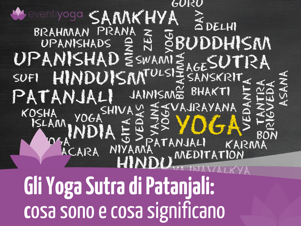 Yoga significa unione, l’unione del singolo, dell’individuo con l’Universale, con il Divino. Sutra significa ‘’filo’’. Yoga Sutra sono 196 perle collegate da un filo che lega una alla seguente per formare una ghirlanda di saggezza.