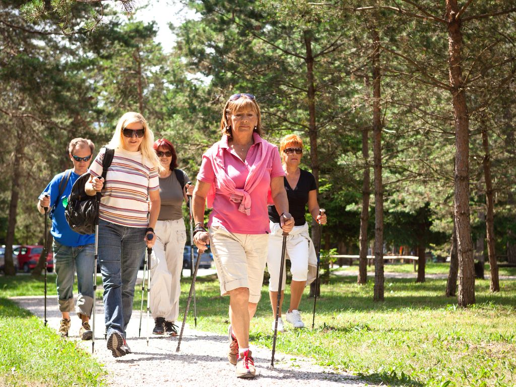 - camminata veloce e nordic walking: si cammina a circa 6-7 chilometri orari ed è accompagnata dal movimento naturale delle braccia; è adatta a tutti, aumenta la resistenza muscolare e migliora la circolazione sanguigna e l’ossigenazione di organi e tessuti;