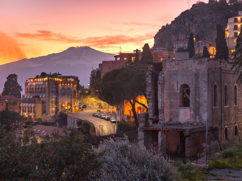 Vicino a Siracusa, la celebre Taormina offre viste spettacolari sul mare e sull’Etna ed è caratterizzata da piccole strade pullulanti di negozi e ristoranti.