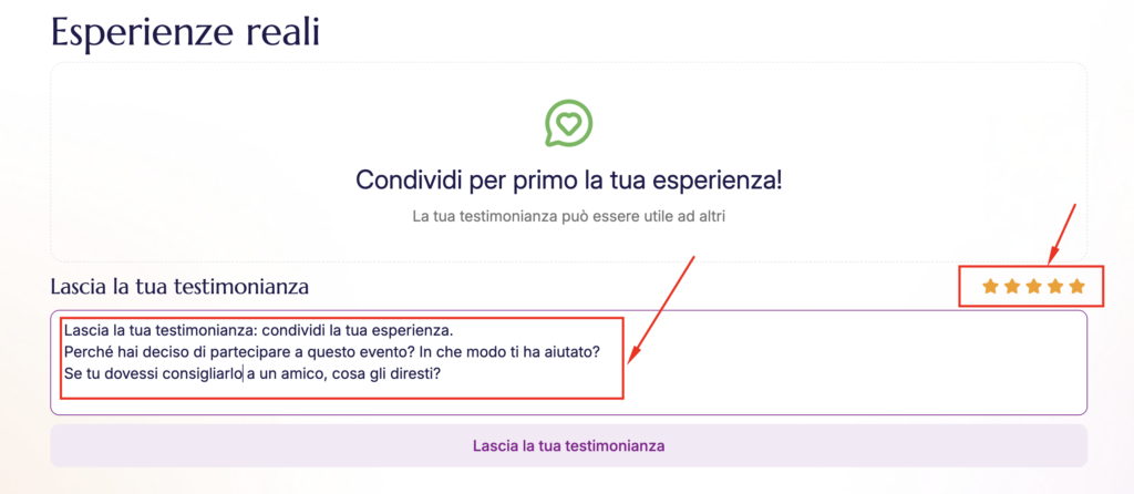 Passo 4: Clicca “Lascia la tua testimonianza” per pubblicare